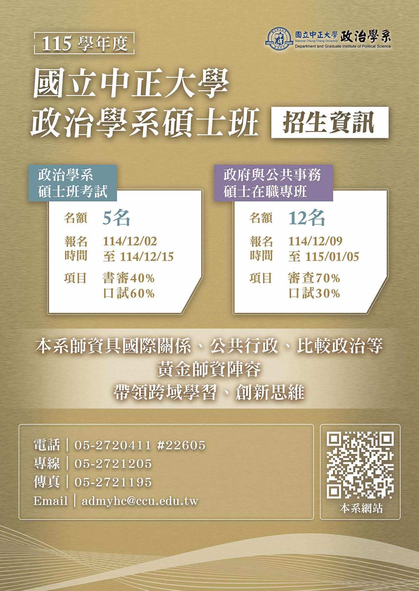 一、 報名日期自114年12月9日起至115年1月5日止。