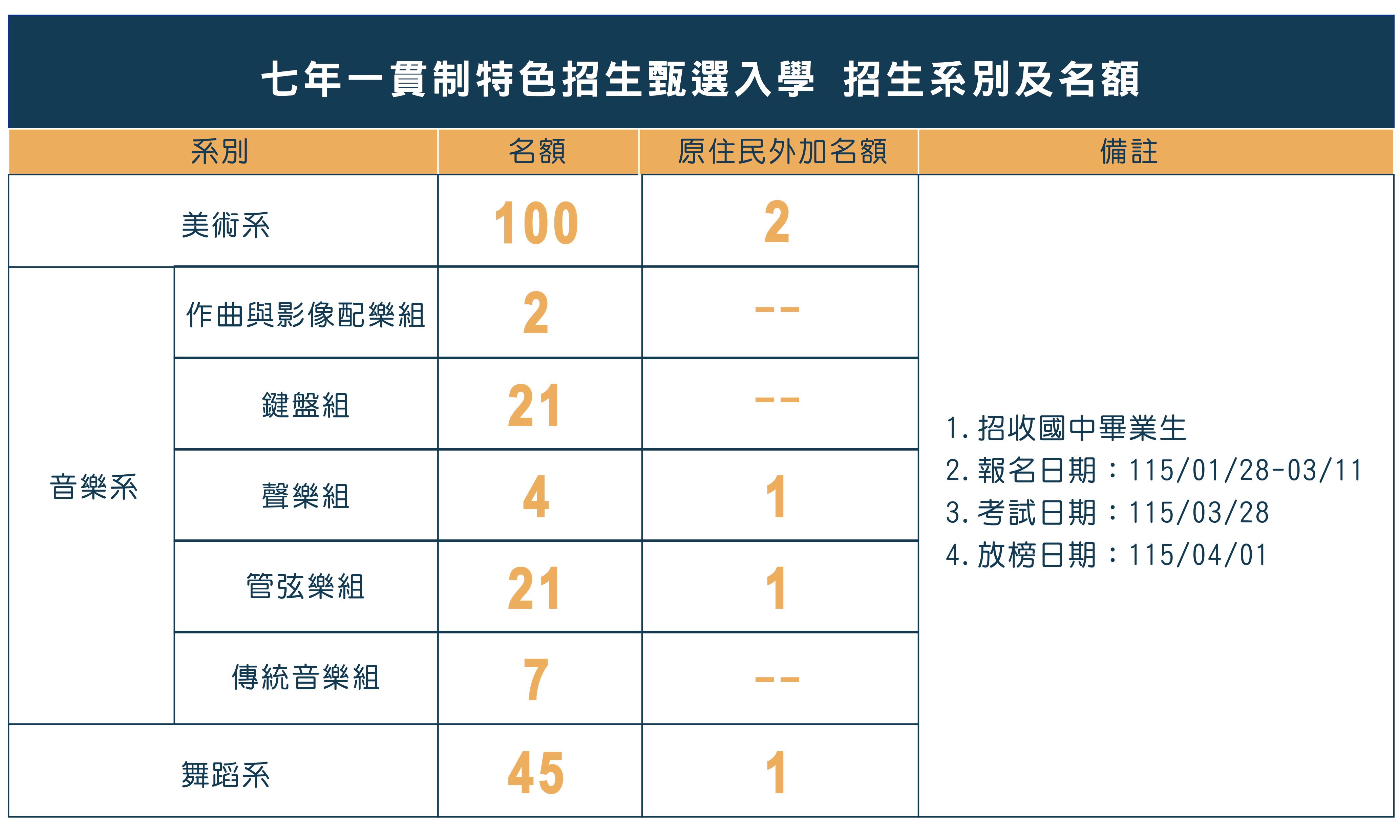 台南應用科技大學115學年度七年一貫制美術系、音樂系、舞蹈系入學招生資訊【招收國中畢業生】