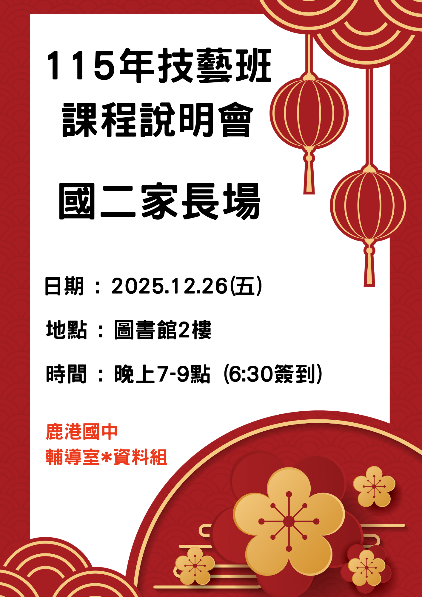 日期 :114年12月26日 (五) 時間 : 晚上 7:00-8:30 (6:30 簽到)