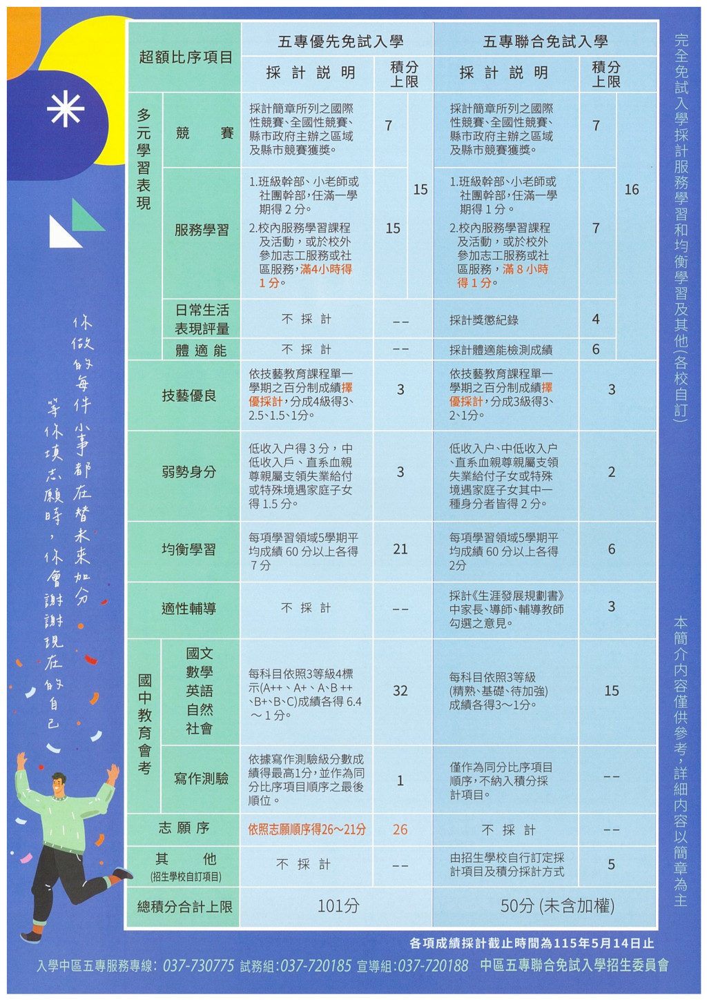 115學年度五專招生宣導投影片 https://exam.jente.edu.tw/index.php?option=com_content&view=article&id=39:xuan-dao-yan-xi-hui-yi-yu2025-12-17yuan-man-wan-cheng-dang-ri-jian-bao-kai-fang-xia-zai&catid=8&Itemid=104