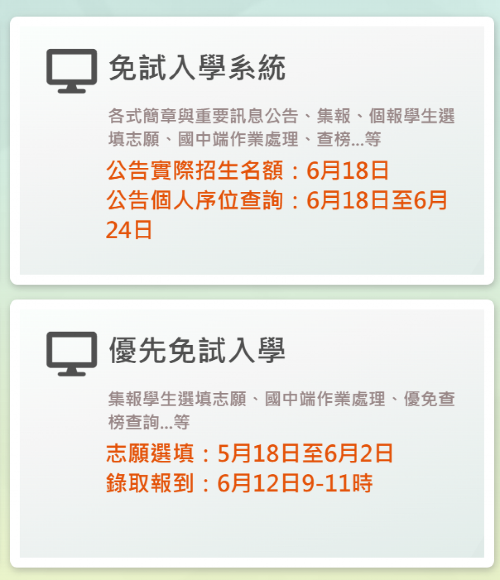 再次提醒:請練習『免試入學系統』、『優先免試入學』兩種升學管道的志願選填!