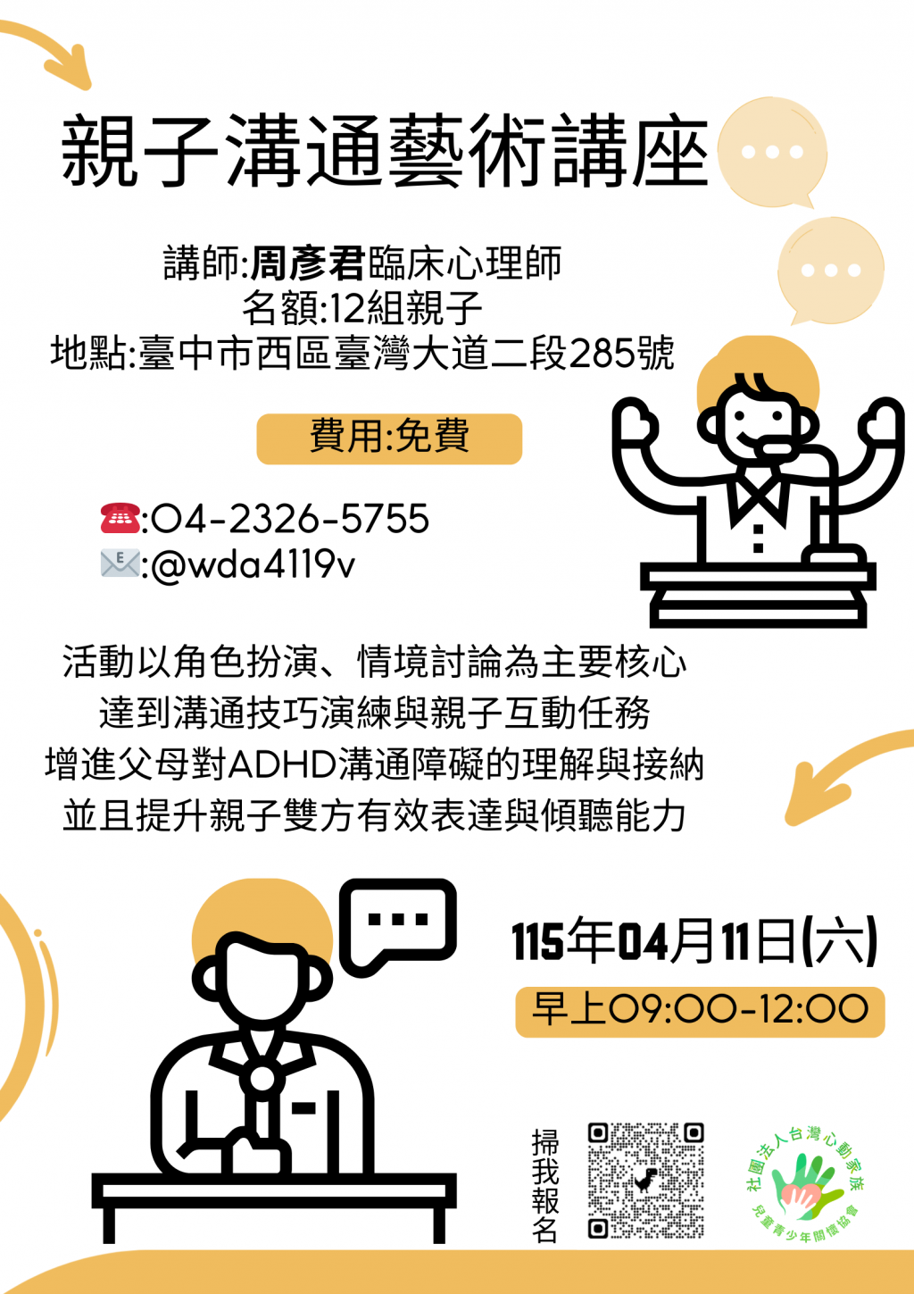 (一)【親子溝通藝術講座】 講師:周彥君 臨床心理師
